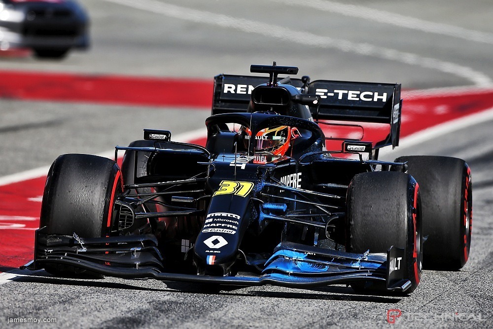 Esteban Ocon (FRA) Renault F1 Team RS20 with flow-vis paint on the front wing.Formula One Testing, Day 2, Thursday 27th February 2020. Barcelona, Spain.
