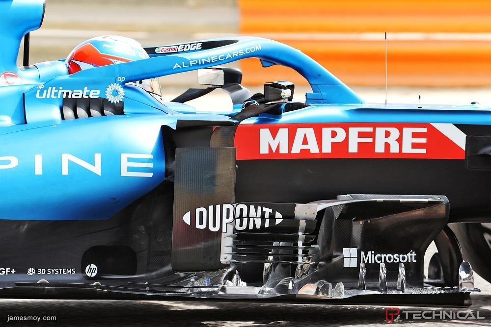 Esteban Ocon (FRA) Alpine F1 Team A521 - sidepod detail.Formula One Testing, Friday 12th March 2021. Sakhir, Bahrain.