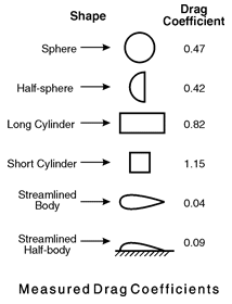 The amount of drag that a certain object generates in an airflow is quantified in a drag coëfficient. This coëfficient expresses the ratio of the drag force to the force produced by the dynamic pressure times the area. Therefore, a of 1 denotes that all air flowing onto the object will be stopped, while a theoretical 0 is a perfectly clean air stream.