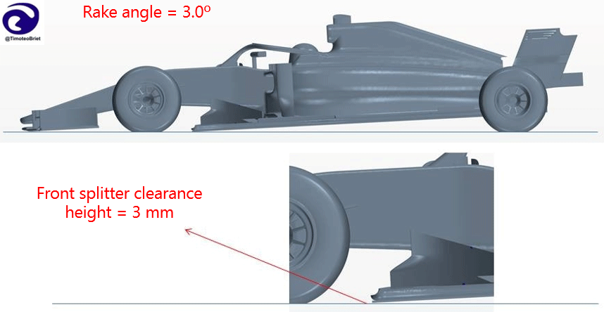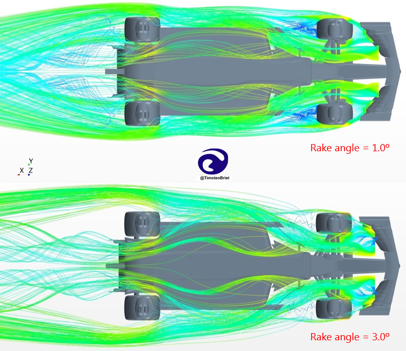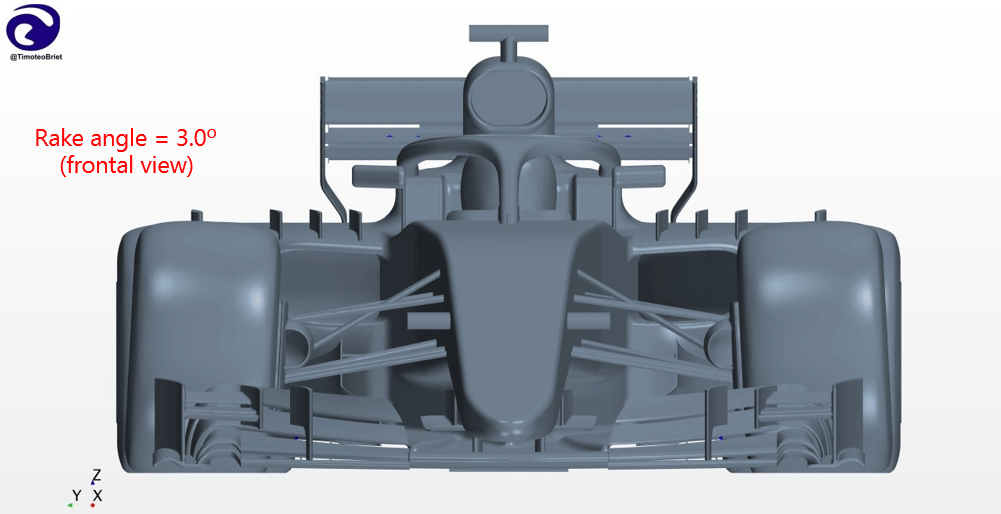 Being able to increase the rake angle of the car, allows increasing the DWF, because, if the FIA regulation reduces the DWF load in the order of 10 %, those teams that designed cars "capable" of having high-rake angles, can compensate for the loss of load by increasing the rake. Simple, isn't it?