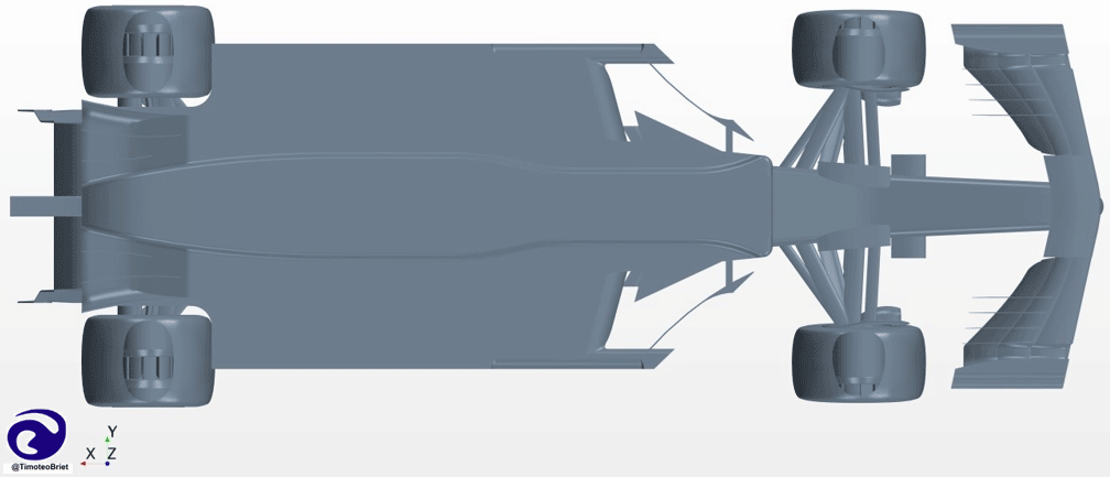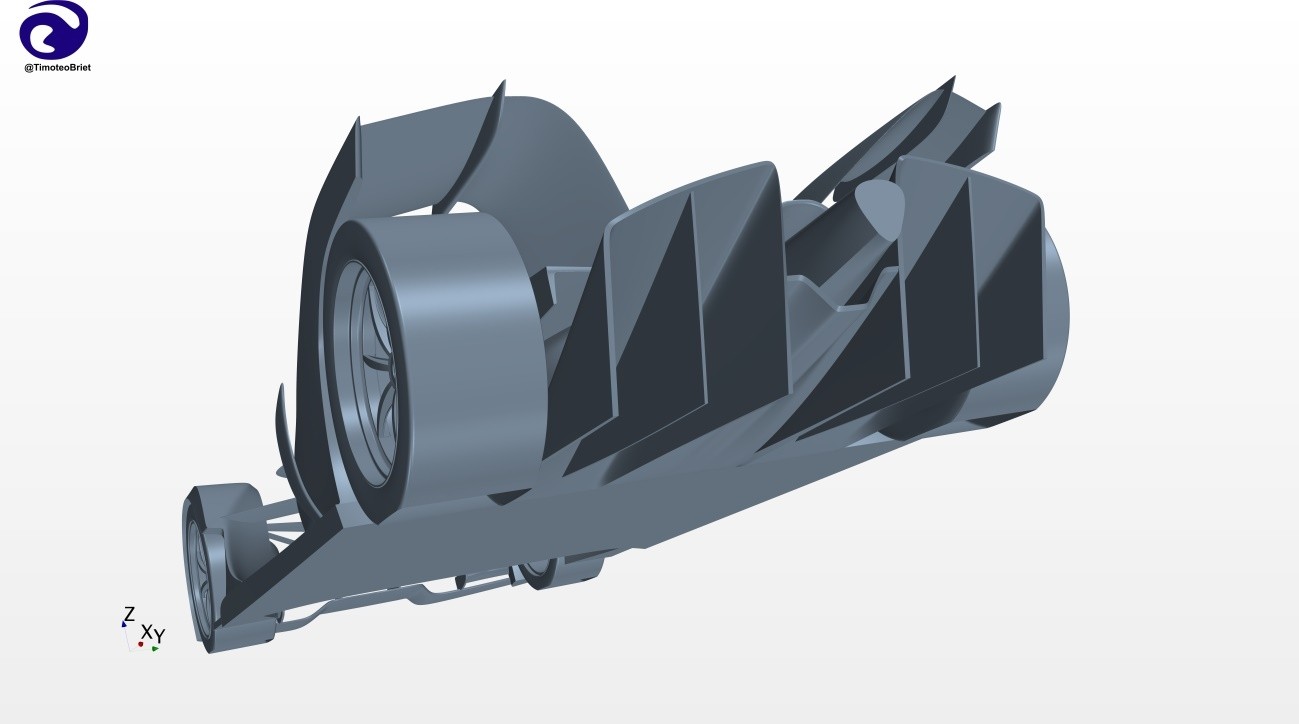 This is just a basic study to understand the dynamic effect of a double-setup (high-rake) car versus a single-setup (traditional low-rake) car. There is still a lot to study, analyse and develop in order to achieve a highly efficient double-setup car. Considering that Adrian Newey began to develop this idea in 2009 and has already been working on this concept car for almost 12 years, it is very difficult for other designers to achieve a similar efficiency in their projects, since a lot of study and development work is needed to define an excellent vehicle dynamics: in aerodynamics, in the study of lateral load transfer in low-speed corners and when braking and accelerating, to make this double-setup car system work properly.