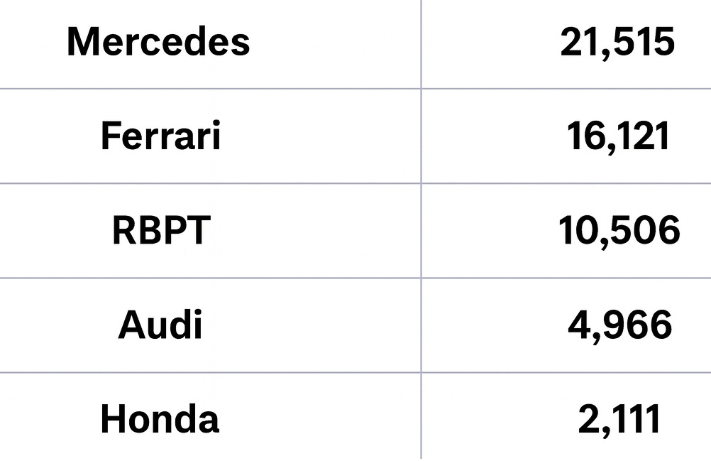 Overall, the mileage distribution underscores the varying stages of development and reliability across the grid. Mercedes and Ferrari head into the season with extensive data and strong early momentum, while RBPT sits in a comfortable middle ground. Audi and Honda, meanwhile, face a steeper climb as they work to refine their packages under tighter mileage constraints.