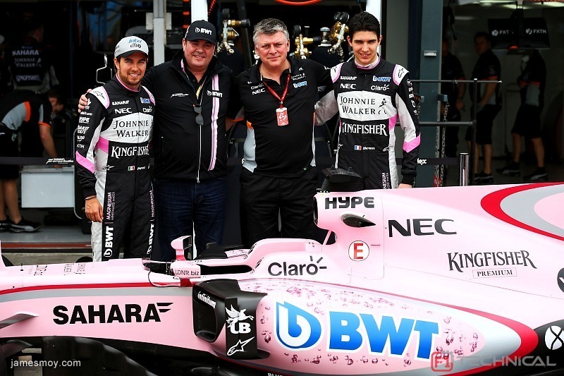 (L to R): Sergio Perez (MEX) Sahara Force India F1; Lutz Huebner, BWT Marketing Chief; Otmar Szafnauer (USA) Sahara Force India F1 Chief Operating Officer; and Esteban Ocon (FRA) Sahara Force India F1 Team.Australian Grand Prix, Friday 24th March 2017. Albert Park, Melbourne, Australia.