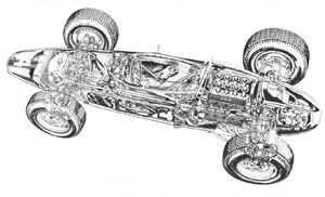The space frame chassis was designated the P578 and for 1962 the Mark III version was ready. The overall profile of the body was wider than the cars from Lotus and Lola and made of ultra-light Elektron rather than glass-fibre. The car with its new engine finally appeared for the 1962 season and soon lived up to its initial tests at the hands of Graham Hill.