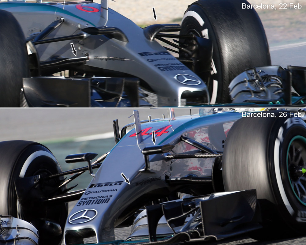 Lots of people were stunned by Alpine's decision to fix a bulky airbox on the A521, but the team have already run their new car today with a new, more compact design that sees the rear end of the car considerably slimmed down. Along with the airbox that now tapers down more more quickly, the sidepod air outlets are smaller, leaving a lot more room low above the car's floor for clean airflow.
