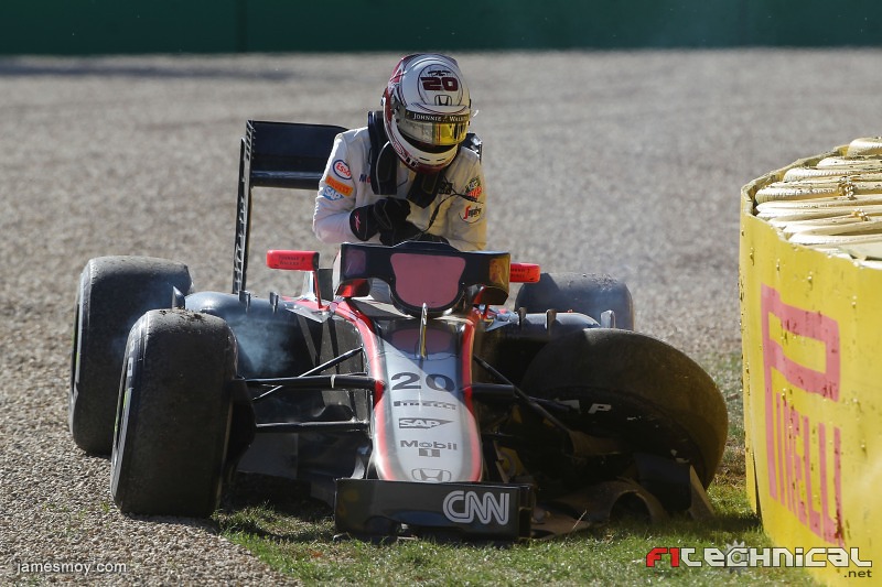 Kevin Magnussen (DEN) McLaren MP4-30 crashes in the second practice session.Australian Grand Prix, Friday 13th March 2015. Albert Park, Melbourne, Australia.
