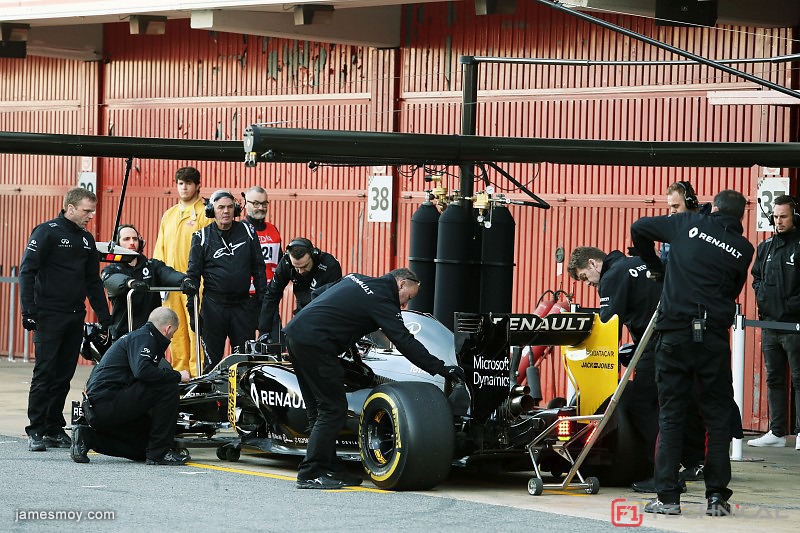 Kevin Magnussen (DEN) Renault Sport F1 Team RS16 in the pits.Formula One Testing, Day 1, Tuesday 1st March 2016. Barcelona, Spain.