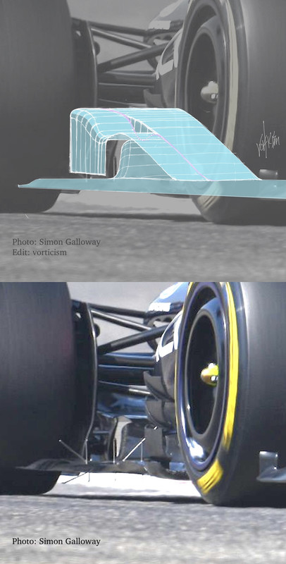 In the last regulation set, in this zone, we saw clean end-to-end curved underfloor strakes to create outwashing vortices from lateral floor edge. Will this 'mini-bargeboard' be anywhere near as successful in 'sending air' to combat front wheel wake ? Or are they trying to send vortices in the x-direction under the floor ?FW17 wrote: ↑22 Feb 2026, 19:01It looks more like a mini barge boardAR3-GP wrote: ↑22 Feb 2026, 04:23My question is how far back could you go with this "tunnel inlet"? Aren't there regs on the roof height under the floor? Otherwise it wouldn't be a flat floor. I don't see how it could be much of a tunnel.